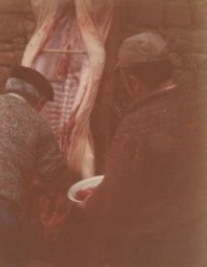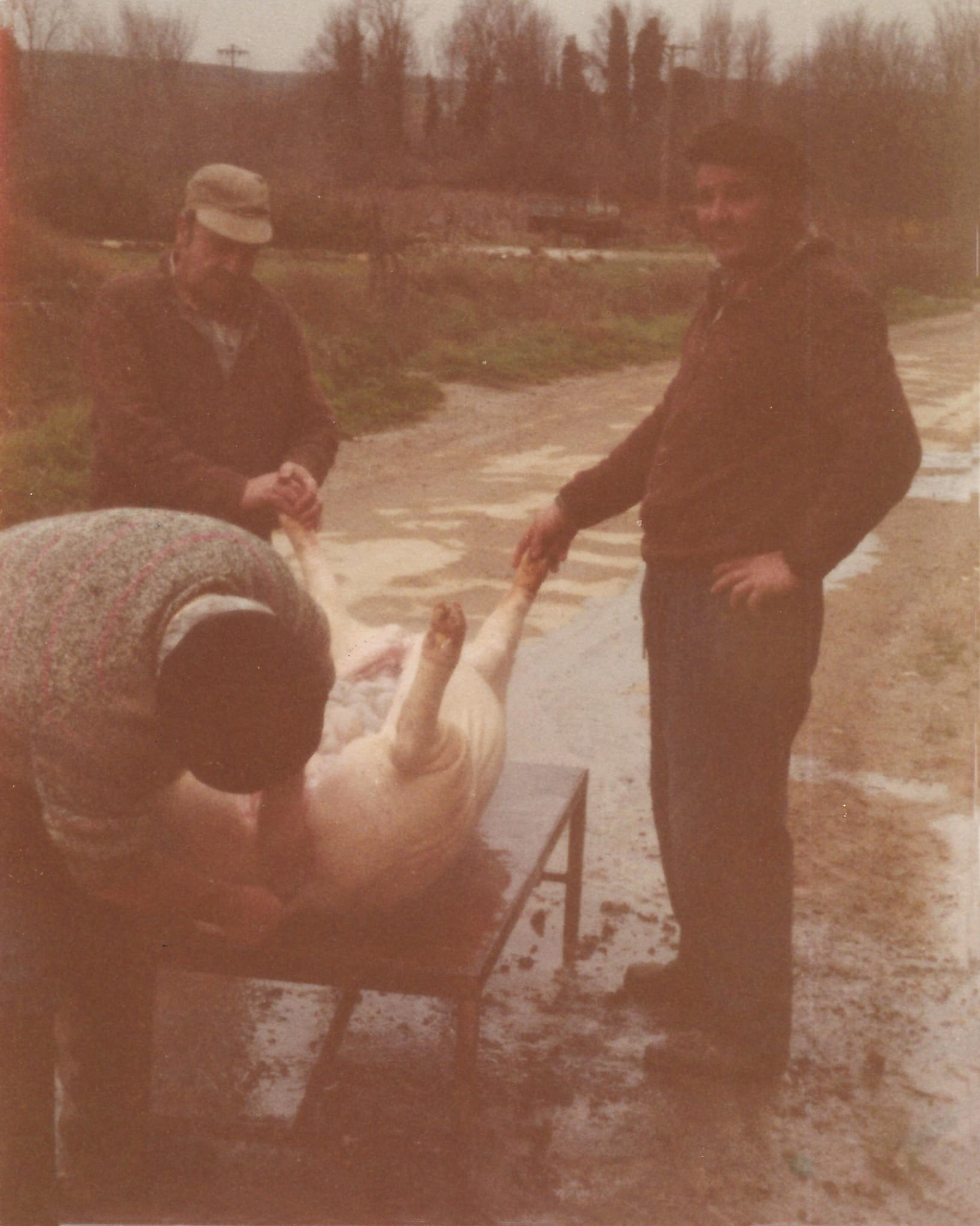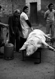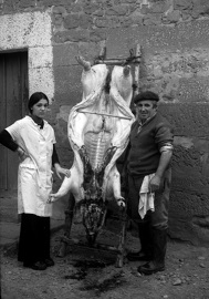 En el mundo rural, la matanza del cerdo era el recurso que abastecía de alimentos la despensa para pasar los largos inviernos. Se realizaba en el momento de menos trabajo para los agricultores, eso sí, teniendo en cuenta la luna, y se convertía en una reunión familiar y vecinal. El acuchillamiento y despiece correspondía a los hombres, siendo las mujeres quienes se encargaban del posterior trabajo de elaboración de morcillas, chistorras, etc… |